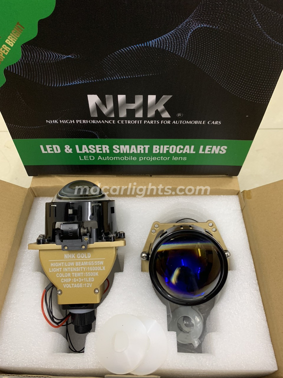 NHK sở hữu thiết kế bi LED siêu sáng với công suất 55/65W đảm bảo ánh sáng mạnh mẽ, sắc nét, giúp tăng cường tầm nhìn và đảm bảo an toàn tối đa khi di chuyển ban đêm.